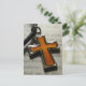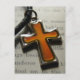 Fotografía por Angelandspot de un collar hecho con una cruz naranja y una cadena negra colocada en una página de libros de época de los días que solía hacer collares de objetos encontrados y objetos añejos y venderlos en un mercado agrícola local.