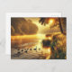 Capturar la belleza del amanecer a lo largo de una pacífica ribera del río. Esta postal tiene el amanecer dorado que refleja el agua, mientras que las garzas elegantes se pasean por las costas. A lo lejos, un grupo de ciervos se acerca para tomar una copa por la mañana. El suave cielo pastel y las olas suaves en el agua crean un ambiente sereno y pintoresco.