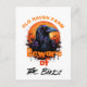 Una especie de adorable cuervo adorable con tipografía que dice que la vieja granja Raven tenga cuidado con el tema de las aves de Halloween