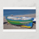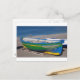 Postal Viejo barco de pesca verde en la playa.