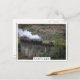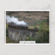 Foto postal de un antiguo tren de vapor en el alto viaducto de Glenfinnan en el oeste de Escocia con un borde blanco y el texto 'Escocia'.