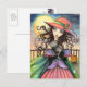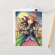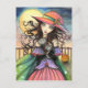 Postal Vientos de Halloween Brujas Tabby Cat Art