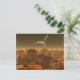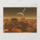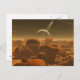 Ilustracion digital de un mundo de luna alienígena orbitando un planeta de anillo.