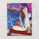Viernes por la noche. Un chica se sienta en el capó de un coche rojo cerca de un club