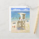 En una tarde soleada, un socorrista solitario busca la costa desde su puesto de vigilancia de madera. :: Acuarela original de Barbara Bayer