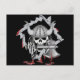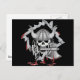 ¡Este cráneo de Viking es seguro que llama la atención! El cráneo malvado con el gorra Viking tiene un hacha de plata en la boca con sangre goteante