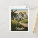Una representación tranquila y nostálgica de Viñales, Cuba, conocida por sus exuberantes campos de tabaco, sus espectaculares colinas de piedra caliza (mogotes) y sus paisajes rurales. El diseño captura el pintoresco valle con casas de campo tradicionales, carritos tirados por caballos y extensos campos verdes enmarcados por altísimos mogotes. La obra de arte, de estilo vintage, evoca el encanto pacífico y la belleza intemporal de Viñales, invitando a los espectadores a explorar su vibrante campiña, sus ricas tradiciones agrícolas y sus oportunidades de aventura al aire libre.