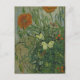 Mariposas y Amapolas (1890) de Vincent van Gogh es una antigua pintura de naturaleza muerta de arte fino postimpresionista. Una escena de jardín. Van Gogh se inspiró en el arte japonés que se muestra en este primer plano de las flores e insectos que es típico del japonismo. Insectos de mariposas blancas vuelan alrededor de hermosas flores de amapola rojas floreciendo y follaje verde brillante en un jardín de primavera.