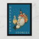 Envía el saludo perfecto con esta vintage imagen en tiempo de historia de Halloween de una bruja madre leyendo historias a sus pequeñas brujas y a su confiable familiar, un gato negro.