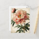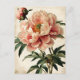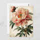 La postal vintage presenta una escena cautivadora de peonías exuberantes en plena floración, sus tonalidades vibrantes que captan la esencia de una era pasada. Los pétalos delicados muestran un espectro de rosa y blanco, creando una mezcla armoniosa que irradia belleza intemporal. El entorno da a un jardín rústico, con toques de verduras descoloridas y sutiles tonos sepia, que le confieren un encanto nostálgico a la composición general. Los bordes de la postal llevan el suave desgaste del tiempo, un testimonio de su viaje a través de los años.