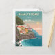 Dream of the Italian Riviera with this vintage-style travel poster postcard. This stunning illustration captures the iconic cliffside villages of the Amalfi Coast, Italy, with colorful houses cascading down to the shimmering turquoise waters of the Mediterranean Sea under a warm Italian sun. The design evokes a classic retro charm, making it perfect for sending a scenic greeting, adding to a travel collection, or framing as beautiful, Mediterranean-inspired wall art. Ideal for lovers of Italy, coastal towns, summer vacations, and classic retro travel posters.