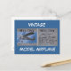 Modelo vintage de avión "Miss Tiny" con información descriptiva de los planes de modelo originales. Dibujado por John Muir, revisado por Barney Snyder