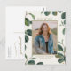 Invite a su familia y amigos a su fiesta de graduación con esta tarjeta postal de invitación a graduación botánica de esta clase de personalizable de 2023. Tiene hojas de acuarela sobre fondo beige. Personalice esta tarjeta postal de graduación de boho agregando una foto, nombre, escuela y otros detalles. Esta tarjeta postal de invitación a la graduación fotográfica está disponible en otras cajas.