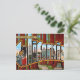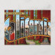 Un retro, vintage saludo de postal de California frente a las gigantes secuoyas!