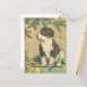 Imagen de Navidades de ilustracion de época con un cachorro sentado bajo el árbol de Navidad.