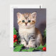 Postal Vintage Christmas Kitten and Holly