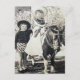 El niño pequeño se sienta en el pony mientras su hermana se sienta a su lado en esta postal de reproducción
