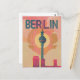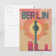 Este poster de estilo vintage exhibe la silueta icónica de la Torre de la Televisión de Berlín (Fernsehturm), de pie alto contra un minimalista fondo retro. El contraste audaz y los tonos apagados evocan el espíritu del diseño de mediados de siglo, capturando la elegancia modernista del horizonte de Berlín. Un impresionante tributo a uno de los monumentos más reconocidos de Alemania, perfecto para los amantes del arte de viajes vintage y la arquitectura urbana.