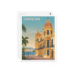 Representación vibrante y nostálgica de Cienfuegos, Cuba, conocida como la "Perla del Sur" por su impresionante arquitectura y encanto costero. El diseño refleja los elegantes edificios coloniales de inspiración francesa de la ciudad, el emblemático Palacio de Valle y el pintoresco paseo marítimo de la bahía de Cienfuegos. La obra de arte, de estilo vintage, evoca el ambiente sofisticado y relajado de la ciudad, invitando a los espectadores a explorar su patrimonio cultural, sus pintorescas calles y su belleza marítima.