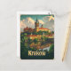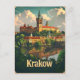 Una encantadora y nostálgica representación de Cracovia, Polonia, mostrando su rico patrimonio histórico y arquitectónico. El diseño presenta los emblemáticos monumentos de la ciudad, como el Castillo Wawel, la Basílica de Santa María y la bulliciosa plaza del Mercado, todo ilustrado con un estilo vintage. Esta obra de arte captura la belleza intemporal y la riqueza cultural de Cracovia, invitando a los espectadores a explorar su pasado histórico y su vibrante presente.