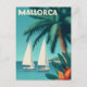 Este poster de estilo vintage capta la serena belleza de la costa de Mallorca, donde las suaves olas se unen a playas doradas bordeadas de palmeras que se balancean. Elegantes barcos de vela desfilan por el mar turquesa bajo un cálido cielo iluminado por el sol. Las obras de arte, decoradas en suaves colores y texturas retro, evocan el encanto de las vacaciones mediterráneas de mediados de siglo, perfectas para los amantes de los viajes y los amantes del diseño costero vintage.