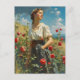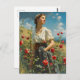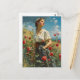 La postal captura una escena atemporal: una mujer, que recuerda a una época pasada, domina el atuendo de un granjero, de pie orgullosamente en medio de un mar de vibrantes rosas. Su ropa exuera simplicidad, reflejando el encanto rústico de la vida agrícola. Los rosas, cuidadosamente cuidados, crean un paisaje pintoresco, infundiendo la escena con una belleza nostálgica y pastoral. La postal resume un momento idílico congelado en el tiempo, celebrando tanto la gracia de la mujer como la natural elegancia del campo floreciente.