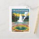 Una impresionante y nostálgica representación del Parque Nacional Yellowstone, la icónica zona salvaje estadounidense conocida por sus maravillas geotérmicas y sus majestuosos paisajes. El diseño captura monumentos famosos como el Géiser de la Vieja Fe, la Gran Primavera Prismática y el espectacular Gran Cañón de Yellowstone. La obra de arte, de estilo vintage, evoca la belleza y la grandeza natural de Yellowstone, invitando a los espectadores a explorar su diversidad de vida silvestre, géisers y paisajes impresionantes.