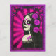 Este diseño único presenta una hermosa mujer con el cráneo de azúcar del Día de los Muertos maquillada. La chica está mirando hacia atrás con tres rosas rojas en su cabello que se repiten en un tatuaje en su hombro. En medio de la frente de la mujer aparece un pequeño corazón con los tradicionales pedales de flores que rodean ambos ojos. Una boca cosida y pequeños remolinos terminan con el cráneo de azúcar y un vestido negro con rocas de encaje terminan con este patrón gótico. El diseño tiene arañazos pequeños y una textura áspera que le da un aire vintage, envejecido y gastado y que tiene el aspecto de un poster antiguo. Las palabras "Día de los Muertos" aparecen en la parte inferior del diseño, enmarcado con pequeñas viñas y rosas.