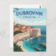 Step back in time to the "Pearl of the Adriatic" with this vintage-style travel poster postcard. This stunning illustration captures the iconic walled city of Dubrovnik, Croatia, featuring its historic fortifications, terracotta rooftops, and the sparkling turquoise waters of the Adriatic Sea. Perfect for sending a piece of European history, adding to a travel-themed collection, or framing as elegant, wanderlust-inspired wall art. Ideal for lovers of medieval cities, coastal landscapes, Croatia, and classic retro travel posters.