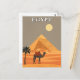 Una postal de viajes al estilo vintage con las pirámides icónicas de Egipto y el paisaje desértico con un camello en primer plano. Perfecto para coleccionistas, viajeros o cualquier persona que ame la historia y cultura egipcia. Hace un gran recuerdo de Egipto o un regalo único para los amantes de las postales.