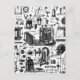 Diversos productos impresos con un grabado antiguo del siglo XIX de varias máquinas, herramientas y aparatos.