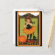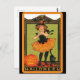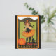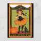 Postal Vintage Halloween Chica Bruja, calabaza, gato negr