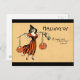 Una linda, vintage, tarjeta de saludo de Halloween de una mujer bruja, enarbolando su escoba sobre sus hombros, con lámparas de Jack o' colgadas a cada lado del palo de escoba, como un equilibrio. La bruja lleva un pelo negro, puntiagudo, un vestido naranja y rayas negras, con un corsé y tacones negros. Tiene el pelo rubio, atado en un moño, y piel clara. Ella está posando como el signo de astrología de Libra. Muy lindo y simple. En el saludo, dice, "Halloween, un momento feliz y alegre". Ideal para cualquiera que ame Halloween, brujas, calabazas y tarjetas de felicitación antiguas. Visita mi tienda, SpookingGhost, para más diseños de Halloween y brujas, o arte vintage de Halloween.
