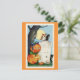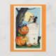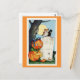 ¡Envíe saludos de Halloween a su familia y amigos con esta linda postal de Halloween con un retro ilustracion de una calabaza en un cementerio con animales como un gato negro, un búho y un pájaro negro!