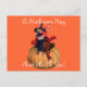 Una linda bruja vintage abrazando a su gato con un mensaje, "¡Un abrazo de Halloween de mí a ti", hace de esto una gran postal para enviar por Halloween!