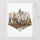 Share the rustic charm of the Hawkeye State with friends and family using this beautifully detailed Vintage Iowa postcard. The artwork features a nostalgic collage of iconic landmarks and symbols, including the majestic Des Moines State Capitol, a historic Madison County covered bridge, a classic red barn, and a hardworking tractor amidst rolling cornfields. Accented with the American Goldfinch and bold retro typography, this card is perfect for travelers, Postcrossing enthusiasts, or anyone wanting to send a warm greeting from the Heartland.