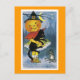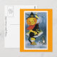 Vintage ilustracion de Halloween mostrando a un niño de jack o'Lantenr sosteniendo un gato negro.