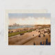 Postal con litografía vintage de Morecambe en Lancashire, Inglaterra, de 1895 fotos de un muelle y desfile a lo largo de una bahía con gente, carrozas tiradas por caballos, veleros y edificios. Limpiado digitalmente, mejorado y representado artísticamente para parecerse a plumas y tinta con acuarelas.