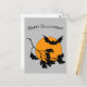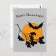 Postal Vintage Naranja de Halloween Moon Flying Bats