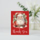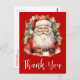 Gracias postal con una linda imagen de color de agua de estilo vintage. Santa Claus con su traje rojo con mejillas alegres y una cara sonriente. Rodeado de pino y de caracol.
