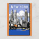 Bonito paisaje vintage de Nueva York con el río Hudson y barco en primer plano.