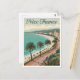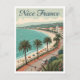 Capture the sunny glamour of the French Riviera with this vintage-style travel poster postcard. This stunning illustration of Nice, France, features the iconic Promenade des Anglais, the turquoise Mediterranean Sea, and lush palm trees. The design has a beautiful, classic retro tourism feel, perfect for sending a dreamy greeting, collecting as a piece of French Art, or framing as elegant, coastal wall art. Ideal for lovers of France, beaches, summer vacations, and classic retro travel posters.