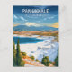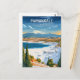 Discover the unique beauty of Turkey with this stunning Pamukkale Turkey travel postcard! This captivating illustrated design features the world-renowned white travertine terraces, often called the 'Cotton Castle,' along with the clear blue thermal pools and a majestic snow-capped mountain in the distance.