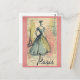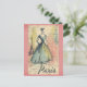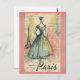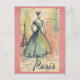 A cualquier amante de la moda le encantaría recibir esta postal antigua con un ilustracion retro de una mujer francesa en París, Francia, cerca de la Torre Eiffel.