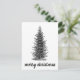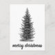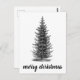Una postal de navidades negros y blancos, rústicos y minimalistas con un ilustracion vintage de un árbol de navidad de abeto noruego.