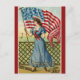 Esta postal presenta un ilustracion vintage de un chica marinero con una bandera estadounidense que está ondeando en el viento. Como telón de fondo, se ve el océano con un pequeño velero. Se remonta a 1908. Disfrute de su postal de Vintage Sailor Chica Cuarto de Julio!