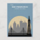 A cualquiera le encantaría recibir esta tarjeta postal antigua con un ilustracion retro del horizonte de la ciudad de San Francisco, California, incluyendo el puente Golden Gate y el edificio Transamerica.