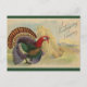 Esta postal cuenta con un ilustracion vintage de un pavo de colores brillantes y altibajos. Una carretera se curva delante del gran tipo y se ven montañas en el fondo. La tarjeta dice, "Un saludo de Acción de Gracias" en una hermosa letra de guión. ¡Disfruta de tu nueva tarjeta postal de Haystacks y pavos de Acción de Gracias!