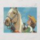 Postal Vintage Western Cowgirl y Palomino Horse