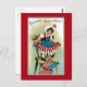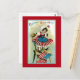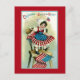 Una chica en una silla muestra su vestido patriótico y baila al ritmo de "Columbia La Gema del Océano" en esta vintage postal de 1908.
